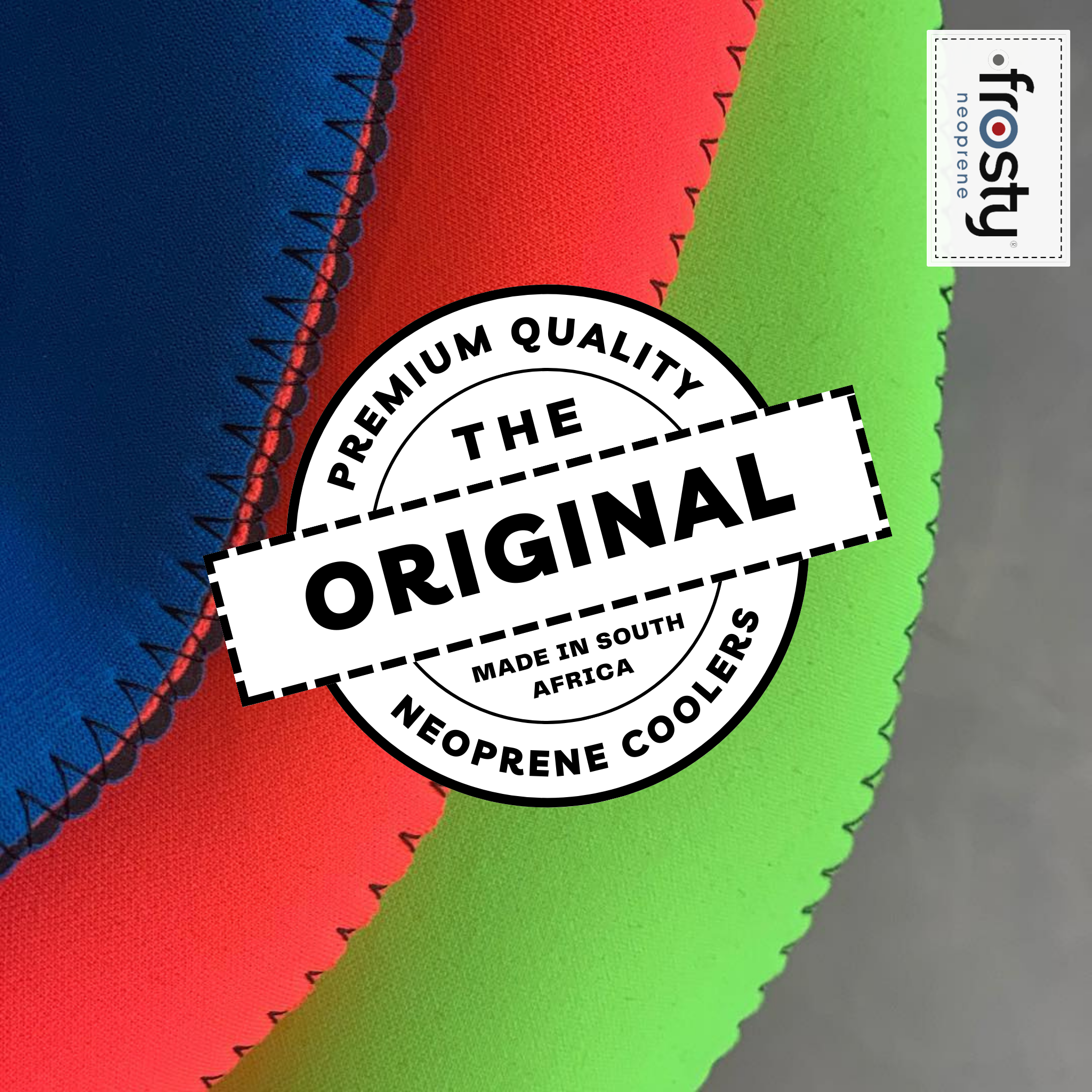 Frosty started from humble beginnings, twenty-five years ago. Today, we are reputable manufacturers of high-quality neoprene can and bottle cooler sleeves designed, sewn, and printed in our local factory. We pride ourselves on producing quality, durable products by adhering to strict manufacturing standards. At Frosty, we know our business when it comes to artwork and full sublimation printing. And we have many creative ideas to keep our ranges up-to-date and relevant. Proudly an official licensee for Sprinkgbok Champions. We have designed many collections inspired by our country. Proudly South African. #homesewn
